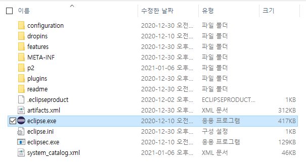 eclipse.exe 파일을 더블클릭하면 실행된다.