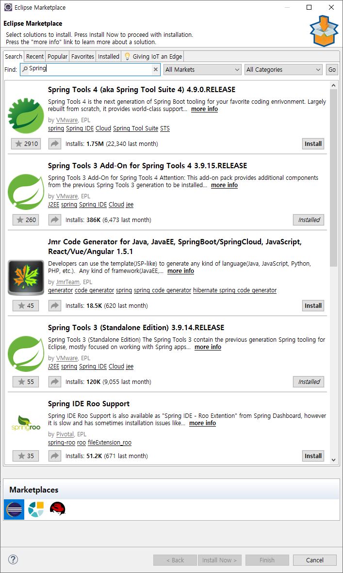 Spring Boot 만 사용할 예정일 경우에는 Spring Tools 4 를 설치하여도 무방하다.