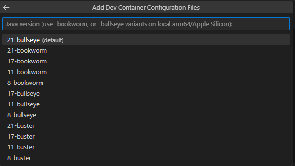 - Dev Containers: Add Dev Container Configuration Files... 를 검색하고 클릭하세요.