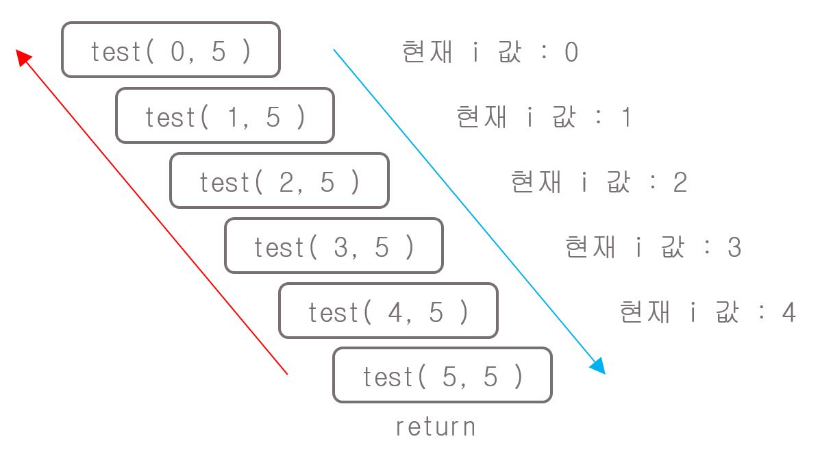 test( i+1, max ); // test method 에서 자기자신을 호출함