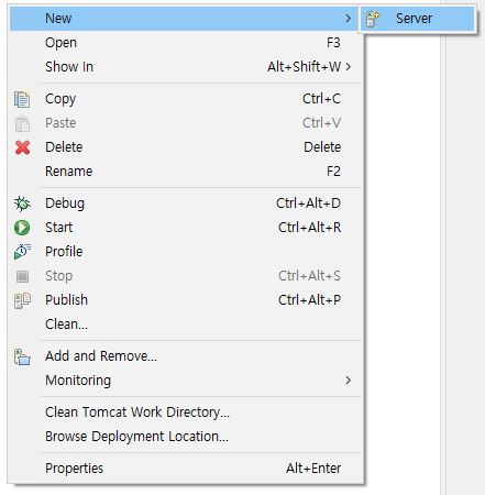 Servers 탭에서 우클릭을 하고 Server 를 생성한다.