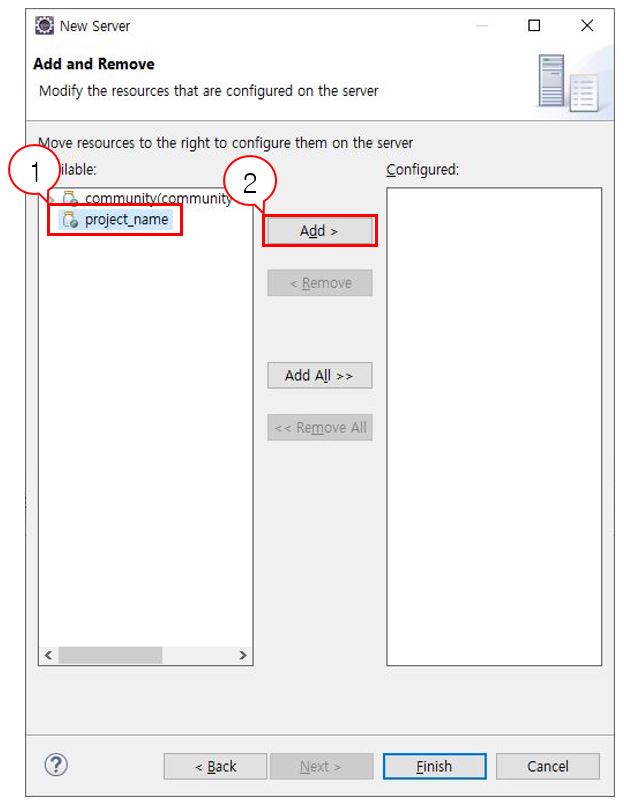 생성한 프로젝트를 선택하고 Add 를 클릭해 오른쪽으로 옮긴다.