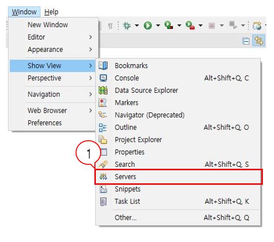 Servers 탭을 활성화 한 다음