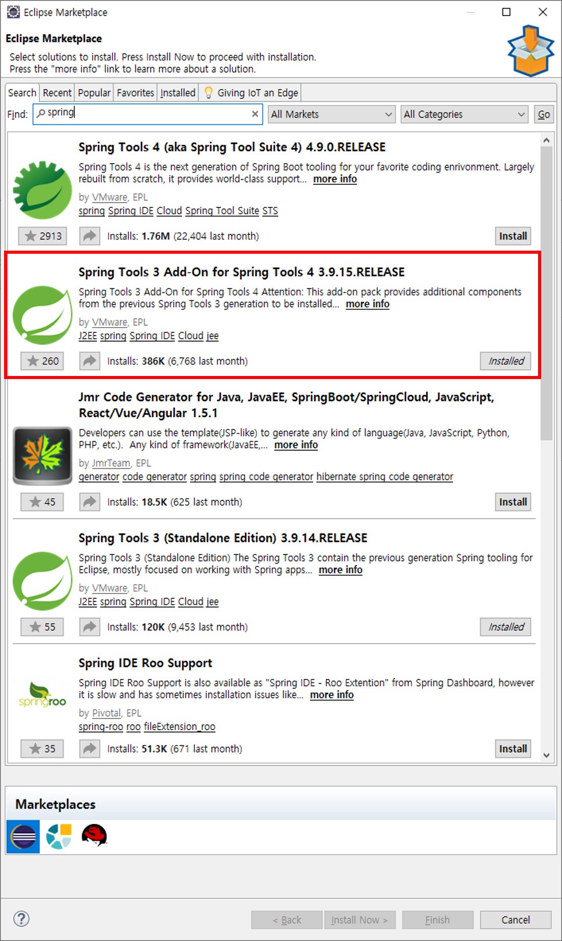 3. 이클립스 플러그인 - Spring Tools 3 Add-On for Spring Tools 4 3.9.15.RELEASE