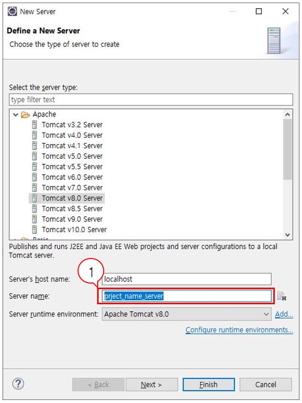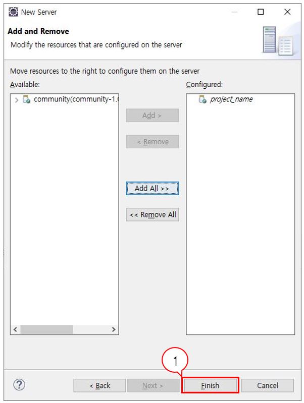 Finish 를 클릭해 서버를 생성하고, Servers 탭으로 이동한다.