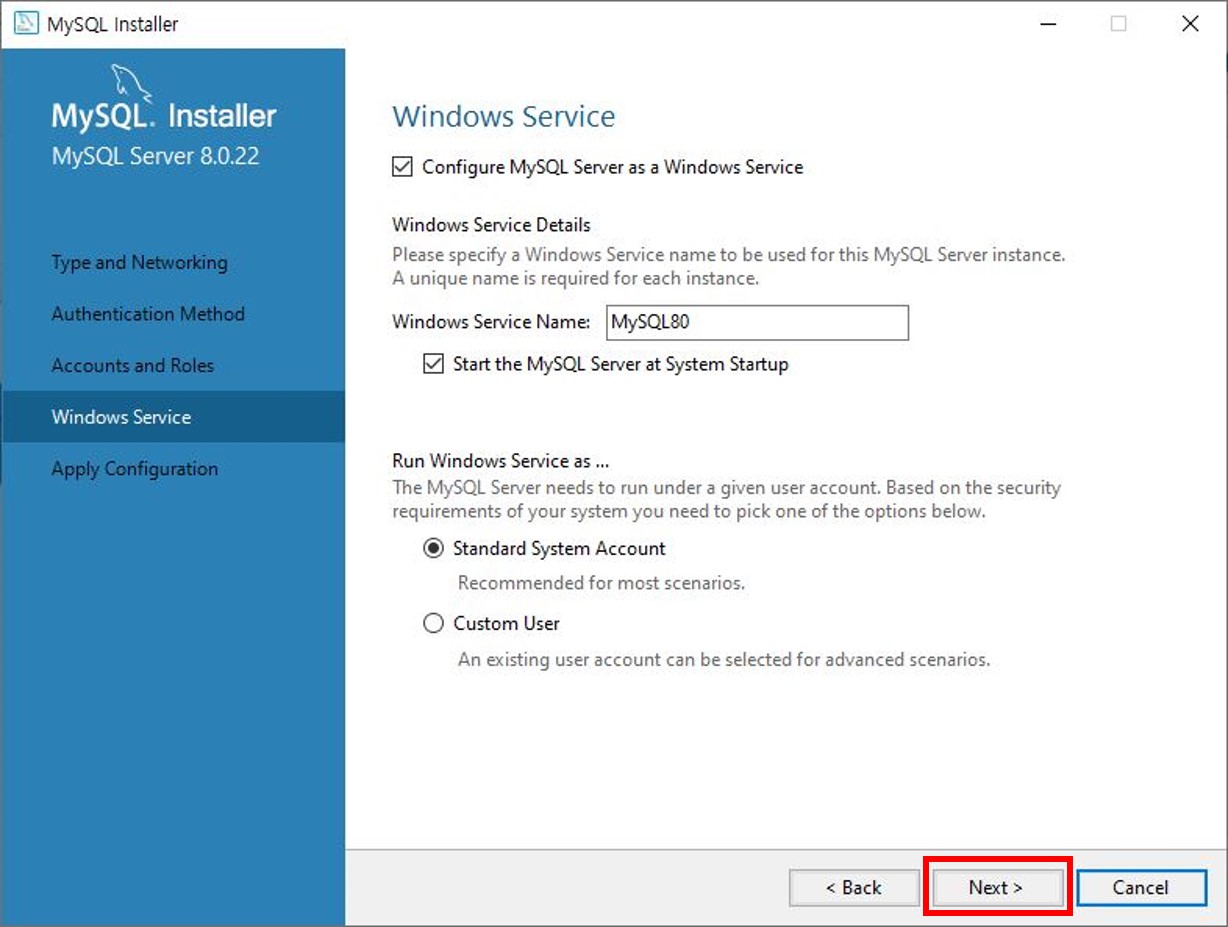 MySQL 서버의 포트 정보를 입력하는 단계이다.