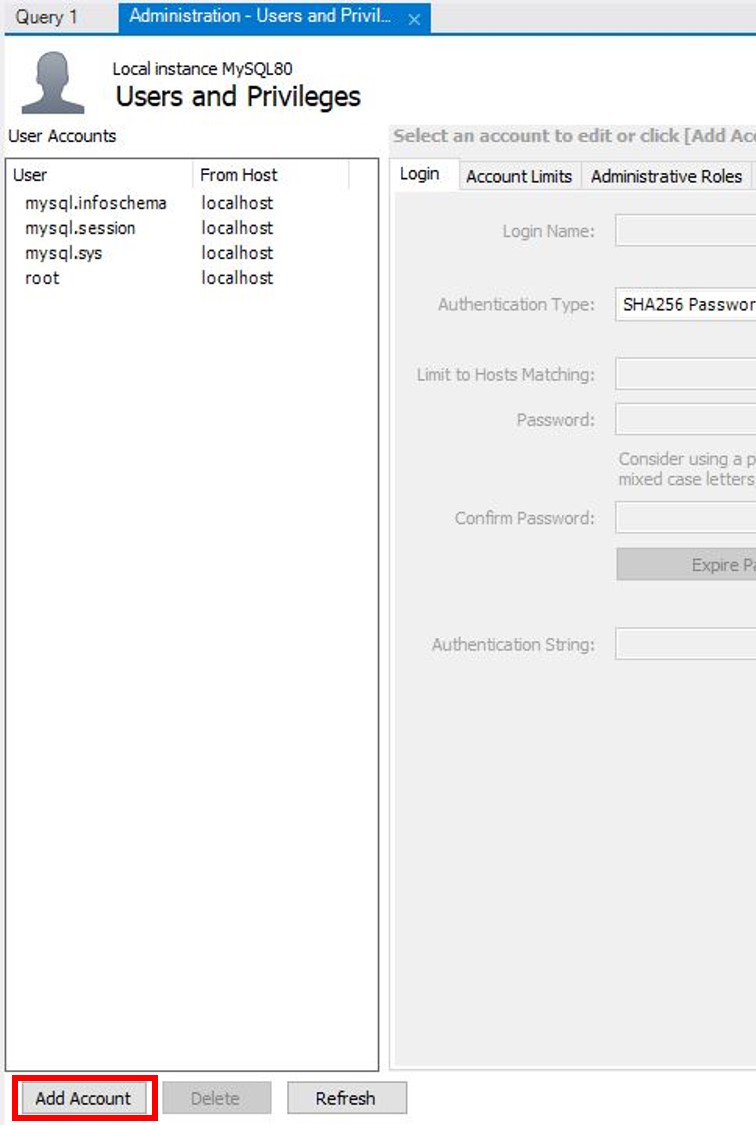 ※ MySQL Workbench 툴을 이용하여 MySQL 사용자 계정 등록하는 방법