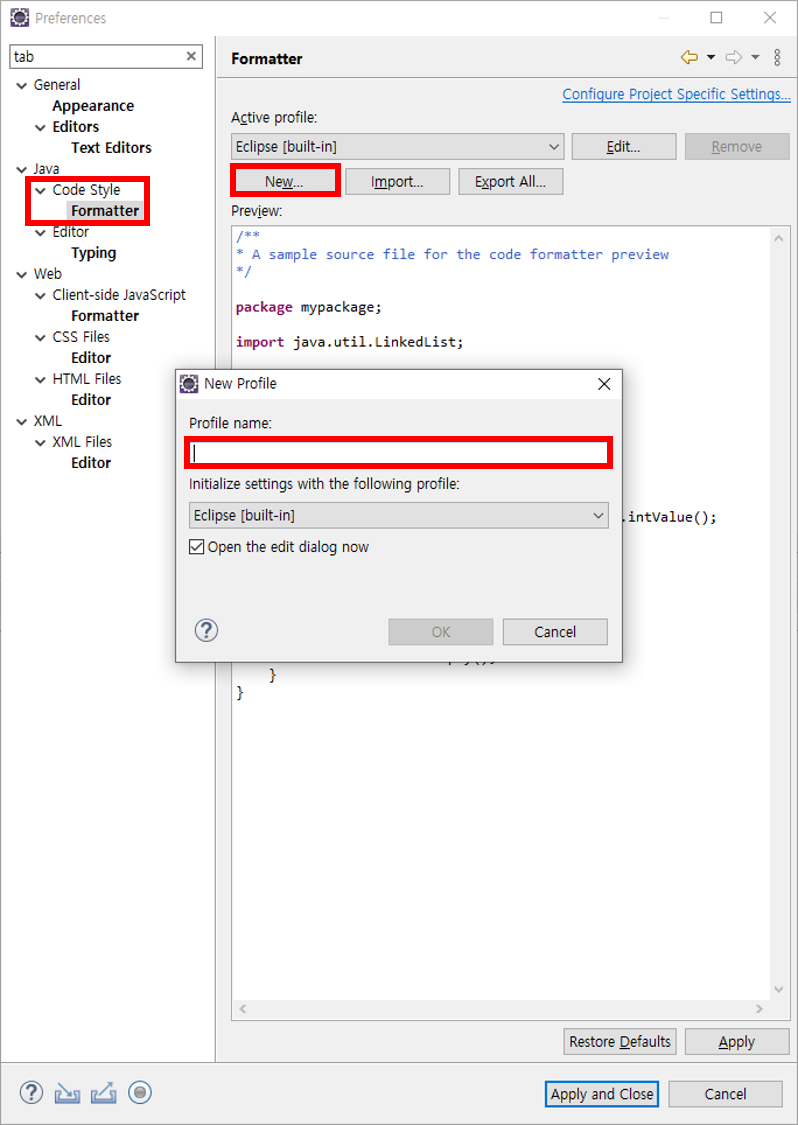 4. 소스 코드에 대한 설정이다.