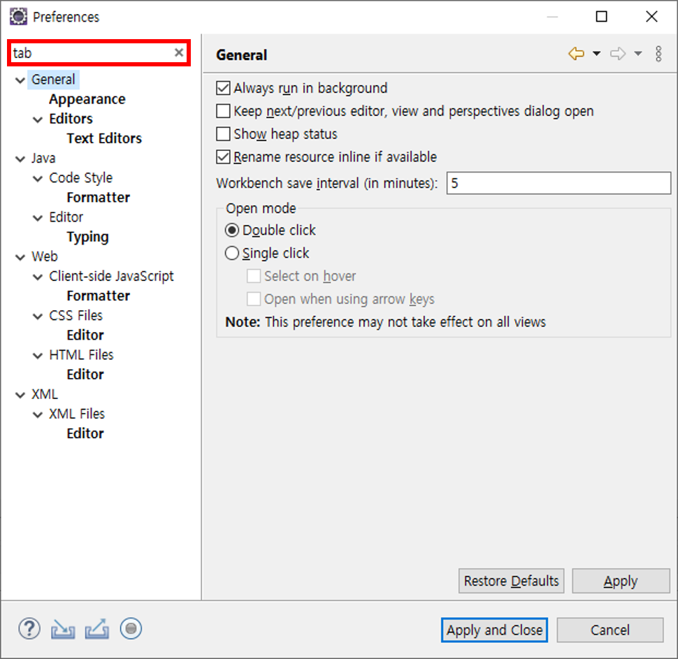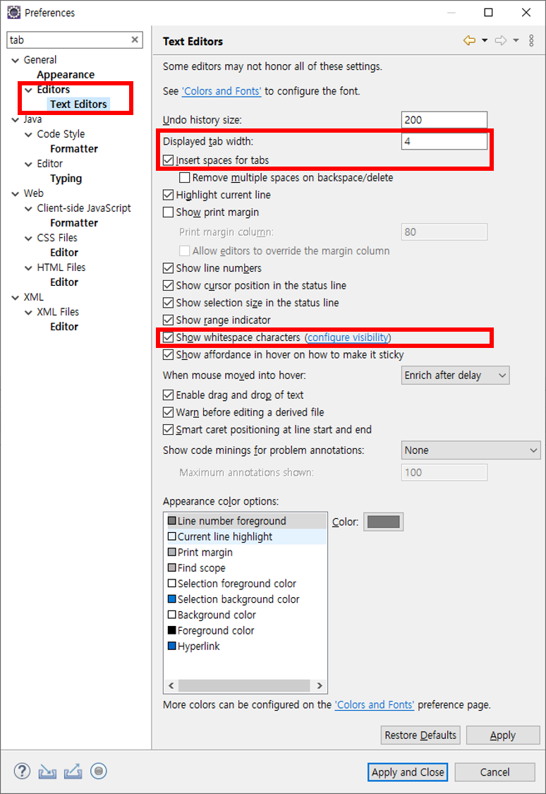 Eclipse 에서 Tab 을 Space 로 변경하는 방법