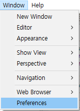 1. 이클립스 상단 메뉴 Window - Preferences 를 클릭